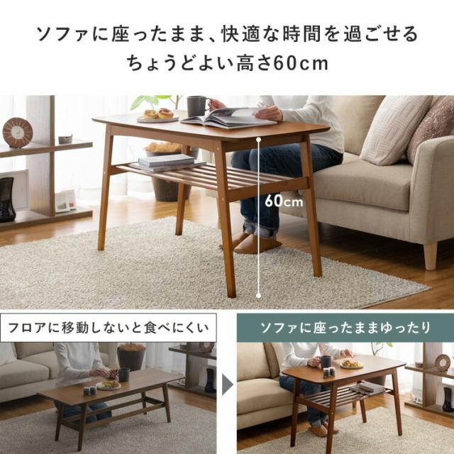 テーブル ローテーブル 高さ60 北欧 木製 リビング リビングテーブル モダン おしゃれ シンプル カフェ リビング用 居間用 収納 棚付き