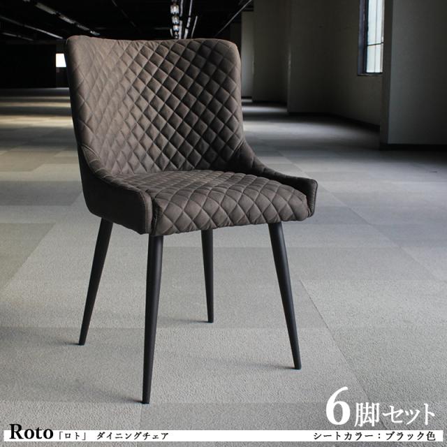 Roto ロト ダイニングチェア 6脚セット ブラック色 全2色 スエード調 ポリエステル布張り スチール脚 デスクチェア 店舗用にも 黒色
