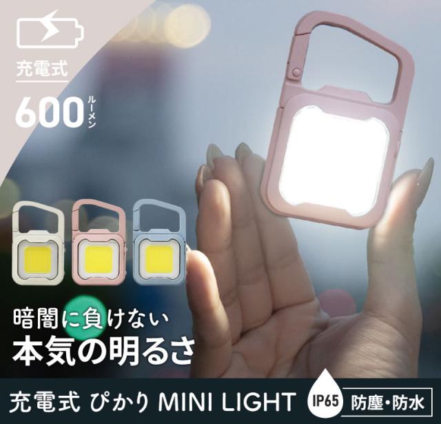 【24%引き】【メール便】 ムサシ 充電式ぴかり MINI LIGHT USB充電 コンパクト 携帯 小型ライト アウトドア キャンプ COBライト ランタン 作業灯 現場 防犯 防災 スポットライト 照明 カラビナフック付き マグネット