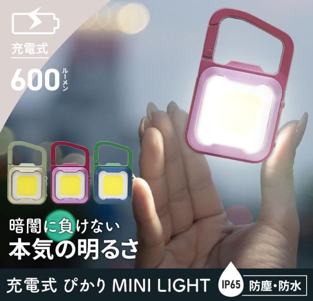 【29%引き】【メール便】 ムサシ 充電式ぴかり MINI LIGHT USB充電 コンパクト 携帯 小型ライト アウトドア キャンプ COBライト ランタン 作業灯 現場 防犯 防災 スポットライト 照明 カラビナフック付き マグネット