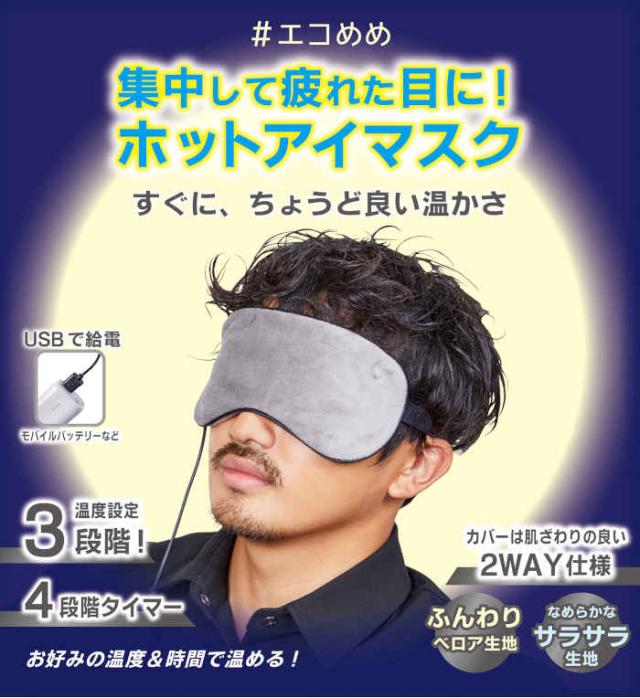 エコめめ 温度設定3段階 4段階タイマー アイマスク ホットアイマスク アイピロー USB電熱式 USB給電式 目の疲れ 目元 ケア 安眠 快眠 安眠グッズ 目隠し リラックス 休憩 繰り返し使える エコ 健康 美容 健康グッズ 美容グッズ プレゼント ギフト 贈り物 母の日 父の日 バレンタイン ホワイトデー
