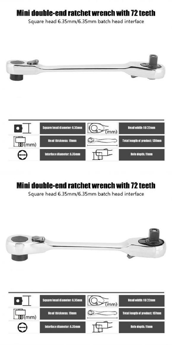 AL 1/4インチ ミニ ラチェット レンチ 72歯 ドライブ HEX ビット ラチェット ツール アレン レンチ HEX ハンドル 130mm・107mm AL-RR-6591