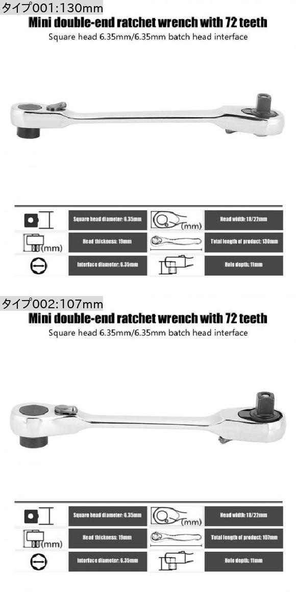 AL 1/4インチ ミニ ラチェット レンチ 72歯 ドライブ HEX ビット ラチェット ツール アレン レンチ HEX ハンドル 130mm・107mm AL-RR-6591 バリエーション: