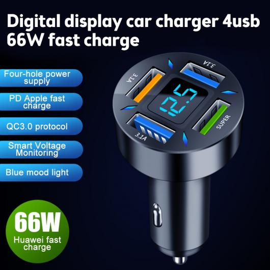 デジタル ディスプレイ チャージャー 4USB 66W 充電 PD 携帯電話 チャージャー 1 ドライビング 4 QC3.0 チャージャー タイプD AL-RR-6795 AL