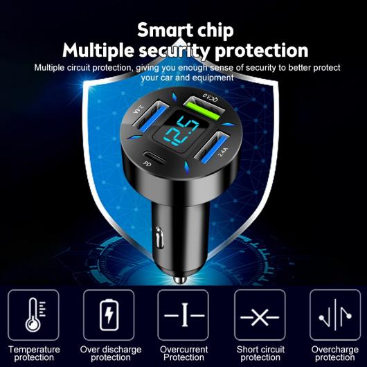 AL デジタル ディスプレイ チャージャー 4USB 66W 充電 PD 携帯電話 チャージャー 1 ドライビング 4 QC3.0 チャージャー タイプD AL-RR-6795 タイプ: タイプD