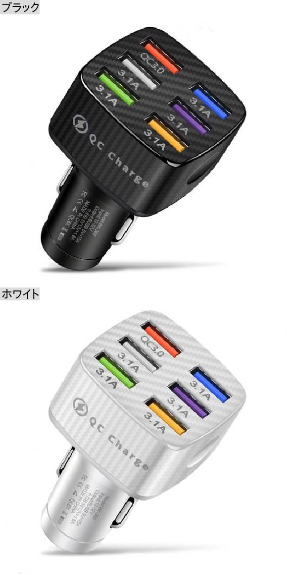 75W 6USB チャージャー 15A シガーソケット エレクトロニック チャージャー 12-32V マルチ USB チャージャー 電圧 レギュレーター QC3.0 ブラック・ホワイト AL-RR-6804 AL