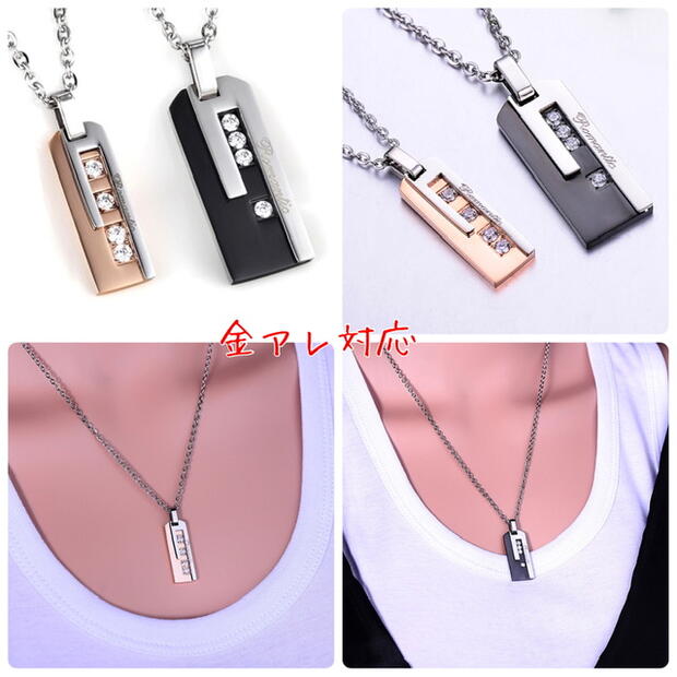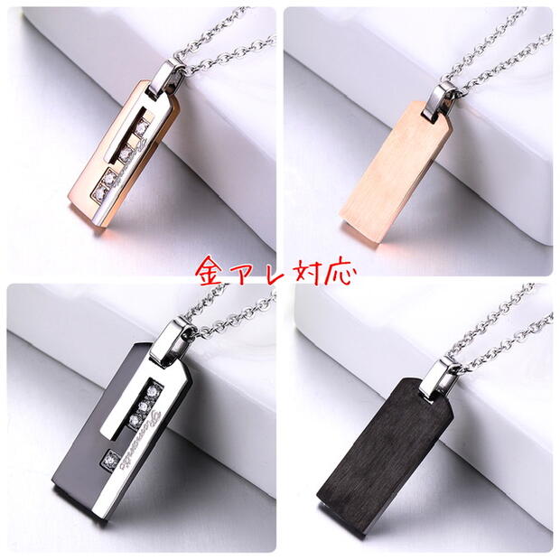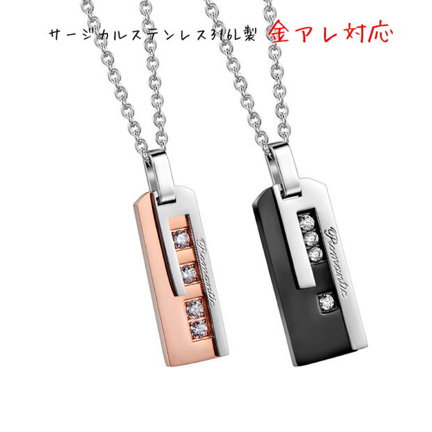 サージカルステンレス ネックレス ペンダント 金属アレルギー対応 ジルコニア プレート ピンクゴールド ブラック ステンレスチェーンネックレス レディース メンズ 男性 女性 シンプル カップル k18 お揃い 記念日 誕生日 クリスマス プレゼント
