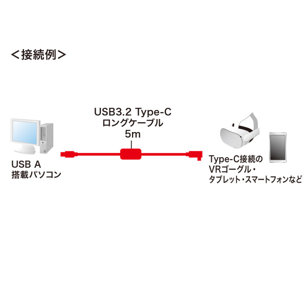 USBケーブル USB3.2 A-Type-C ロングケーブル サンワサプライ(5m・VRヘッドセット対応)KB-USB-RLC305