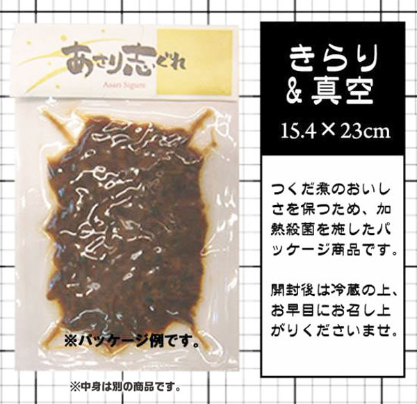 | 原材料名 | カラフトシシャモ(ノルウェー産又はアイスランド産又はその他)、砂糖、しょうゆ(大豆・小麦を含む)、水あめ、還元水あめ、寒天/甘味料(ソルビット)、調味料(アミノ酸等)、酸味料、増粘多糖類 カラフトシシャモの産地は製造年の使用計画順 | ||||||||||