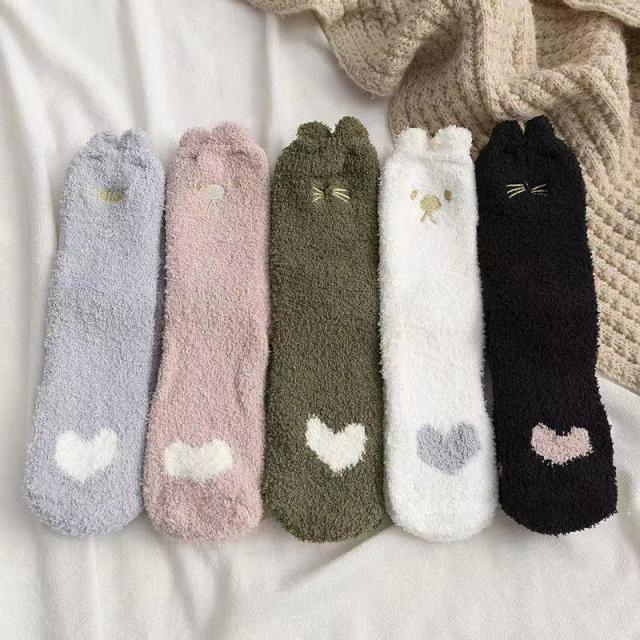 ふわふわであったか。 クマさんがかわいいルームソックス3足セットです。 耳がキュートでつま先にはハート柄、足の裏には肉球の柄がついています。 ふわふわで履き心地もよく、冷たい足を温めてくれます。 閲覧時のモニター状況によって商品の色味が変わることがあります。