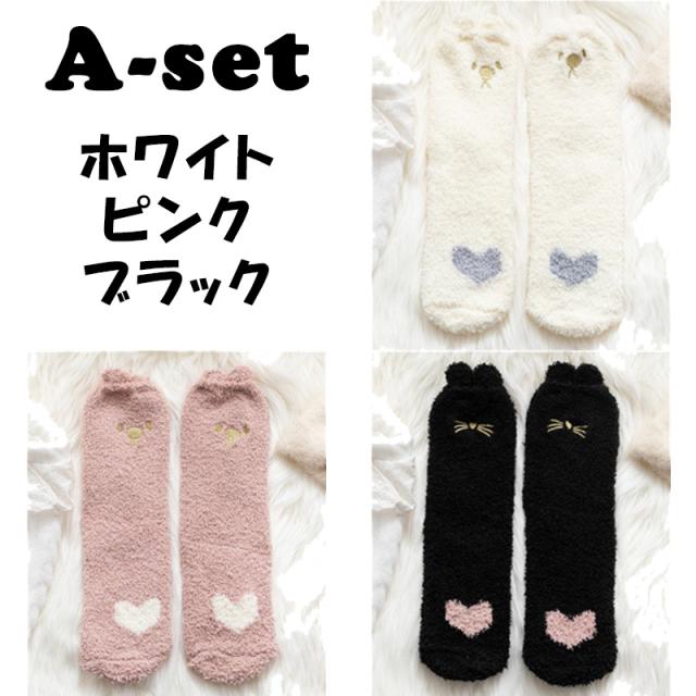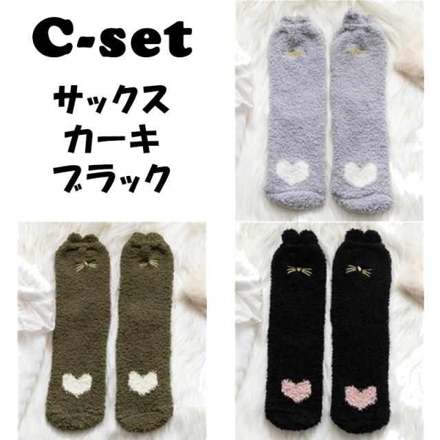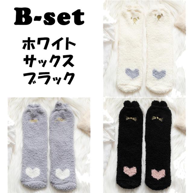 クマさんのふわふわルームソックス 3足セット【ルームソックス】【ふわふわ】【靴下】