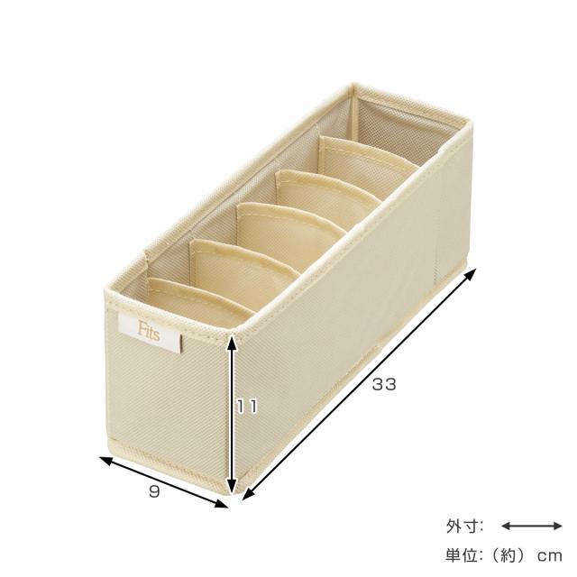 仕切りケース フィッツファブリック せいとんボックス S(仕切り6マス) ( 幅9×奥行33×高さ11cm 収納 引き出し 仕切り 収納ケース 布製 インナーケース 仕切りボックス 引出し タンス チェスト 整理 衣類収納 靴下 ハンカチ 下着 )