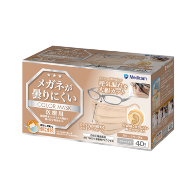 メディコム メガネが曇りにくいカラーマスク ベージュ 40枚入 4894476027458