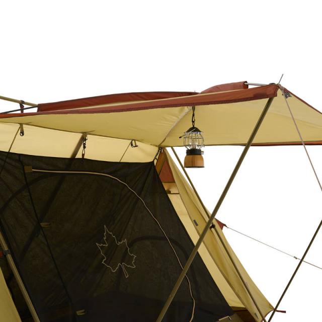 2本のポールで支えるだけでテントと一体化したタープとなるため居住空間が広がり、湾曲しているので雨だまりも防止します。