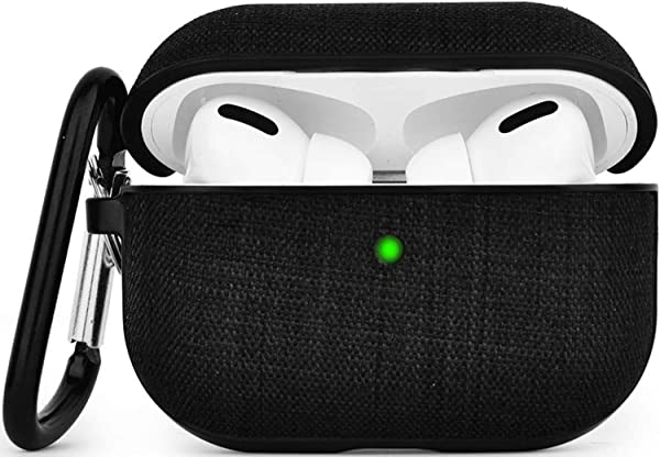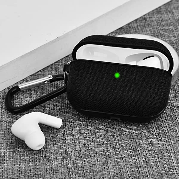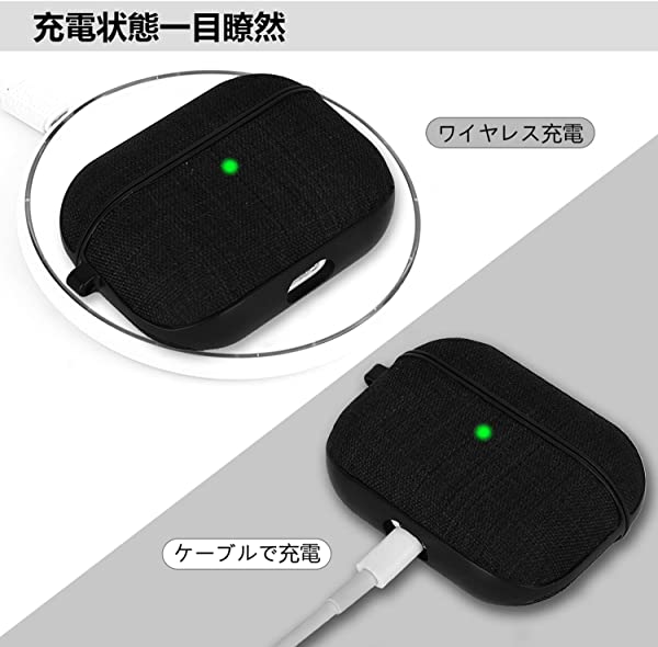 AirPods Pro ケース カバー (2023/2019用)エアーポッツプロ ケース キャンバス保護ケース Airpods Pro収納ケース 分離式 おしゃれ カラビナ付き LEDライトが見える 装着充電対応 キャンバス素材 キズ防止 耐衝撃 軽量 防塵 紛失防止 持ち運び便利 (ブラック)