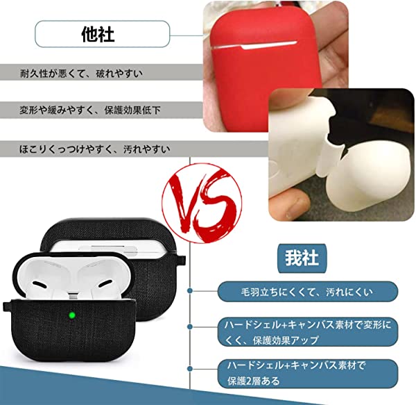 【高品質素材&アップグレードした設計】このAirpods Proケースは高品質で丈夫なキャンバス素材で作られて、シリコンケースよりも耐衝撃、耐摩耗で、汚れにくいです。デザインも前よりアップグレードしました。Airpods Proを完全に開けるように後ろにノッチを設計しました。