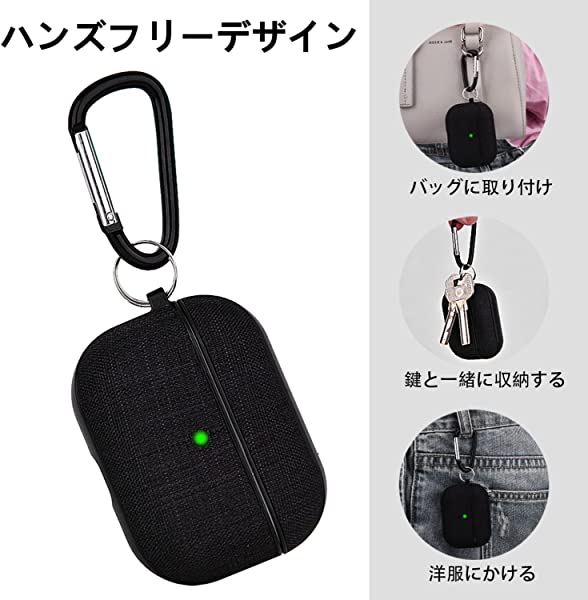 AirPods Pro ケース カバー (2023/2019用)エアーポッツプロ ケース キャンバス保護ケース Airpods Pro収納ケース 分離式 おしゃれ カラビナ付き LEDライトが見える 装着充電対応 キャンバス素材 キズ防止 耐衝撃 軽量 防塵 紛失防止 持ち運び便利 (ブラック...
