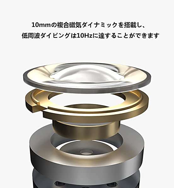 【1ダイナミックドライバー】新しい10mmコンポジット磁気ダイナミックコイルが1つ装備されており、中低域はフルで繊細で、人気のあるボーカルにぴったりです。豊かな質感と力強い低音に溢れています。新しい種類の聴覚をもたらします。