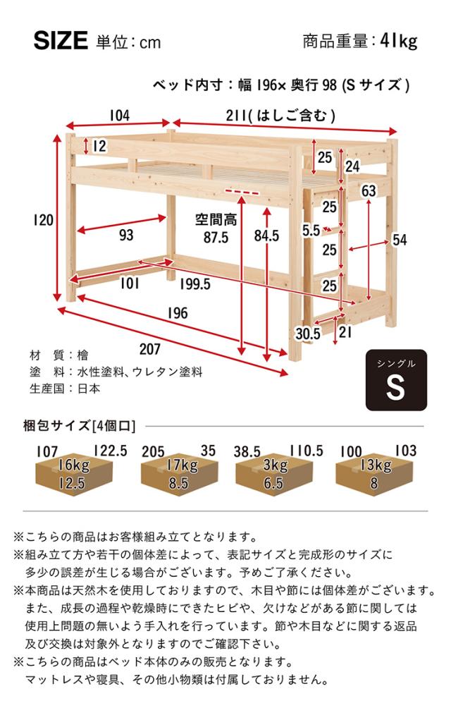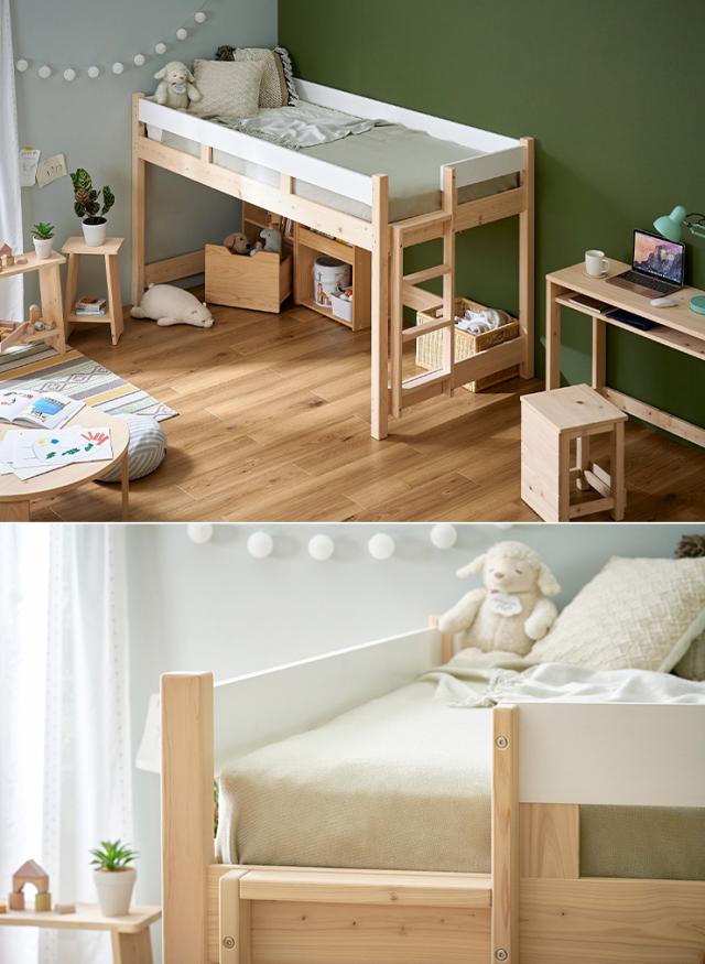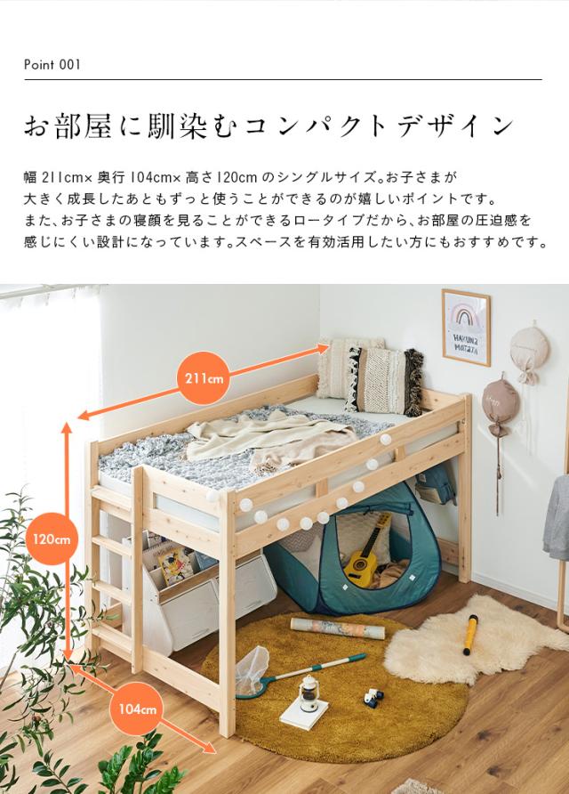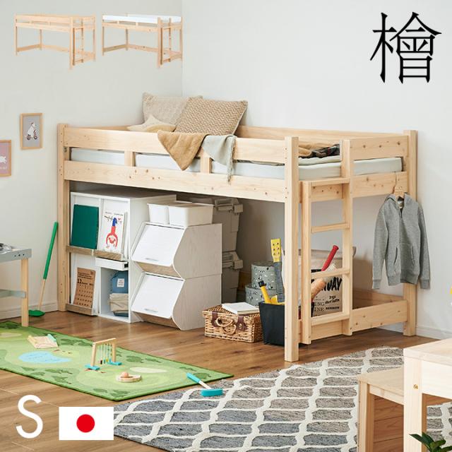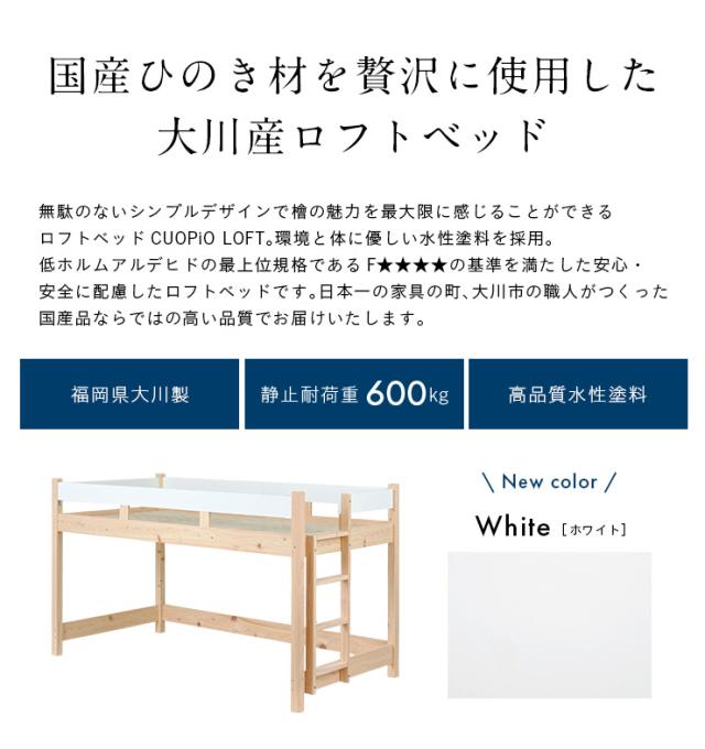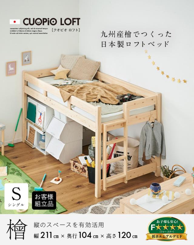 【5年保証/大川産/九州産ひのき使用】国産 ロフトベッド S シングルサイズ ヒノキ 檜 木製 シングルベッド システムベッド システムベット ロータイプ 子供用ベッド シンプル おしゃれ CUOPiO Loft(クオピオロフト)