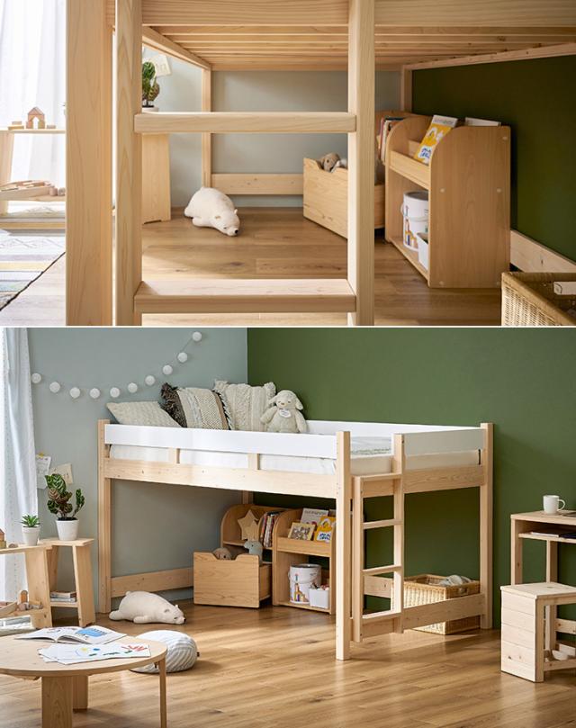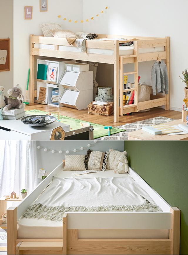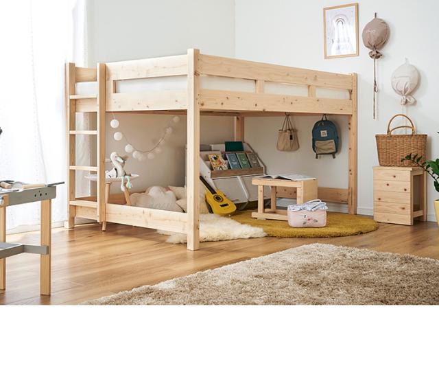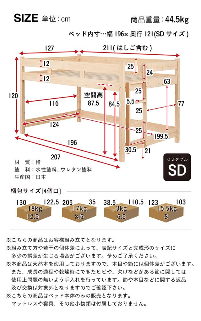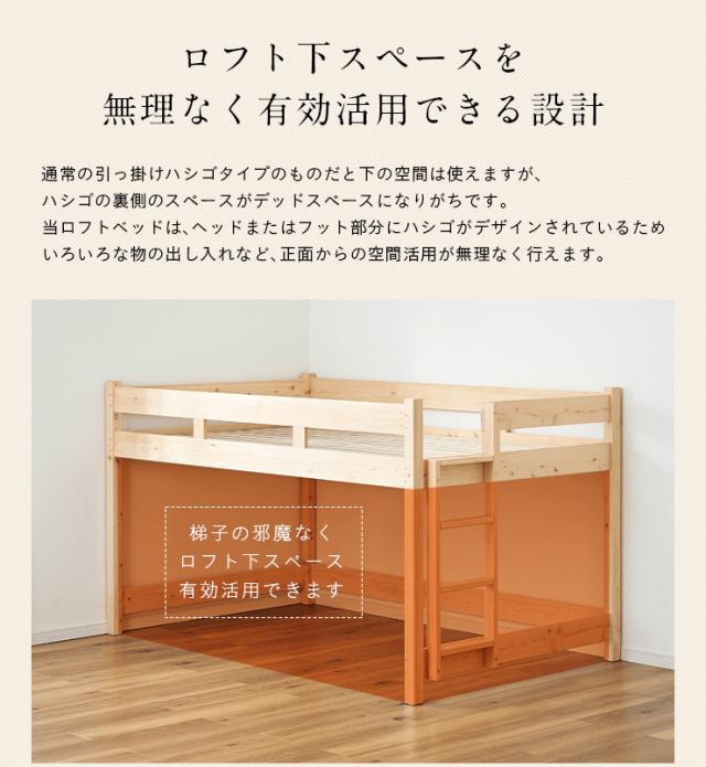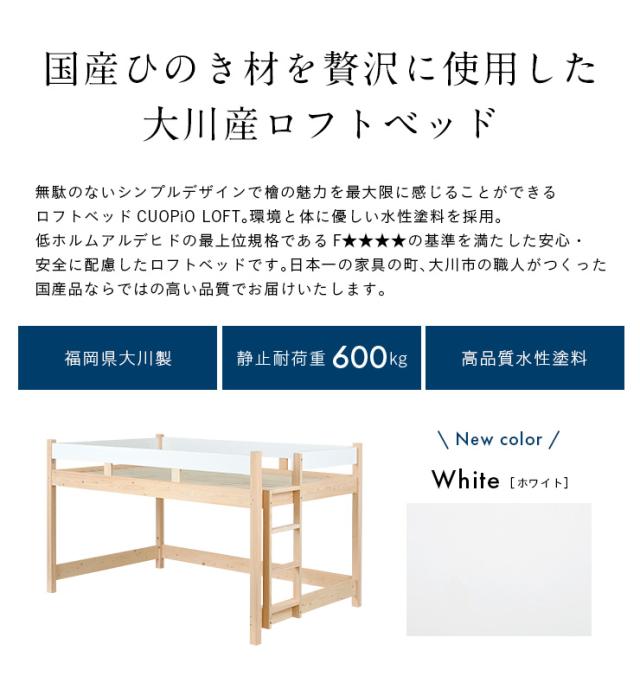 【5年保証/大川産/九州産ひのき使用】国産 ロフトベッド SD セミダブルサイズ ヒノキ 檜 木製 セミダブルベッド システムベッド システムベット ロータイプ 子供用ベッド シンプル おしゃれ CUOPiO Loft(クオピオロフト)