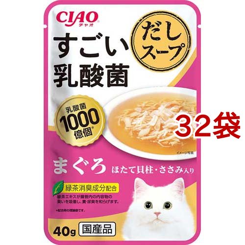 CIAO すごい乳酸菌 だしスープ まぐろ ほたて貝柱・ささみ入り(40g*32袋セット)[キャットフード(ウェット)]