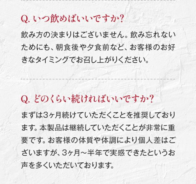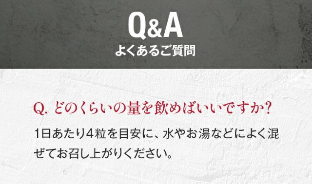 1日あたり4粒を目安に、水またはぬるま湯などでお召し上がりください。