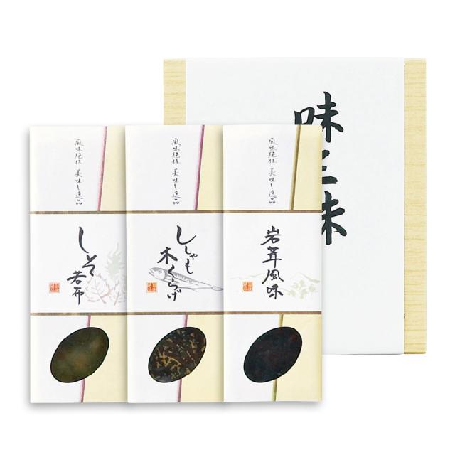 ■商品内容:(岩茸風味・しそ若布・ししゃも木くらげ)各80g