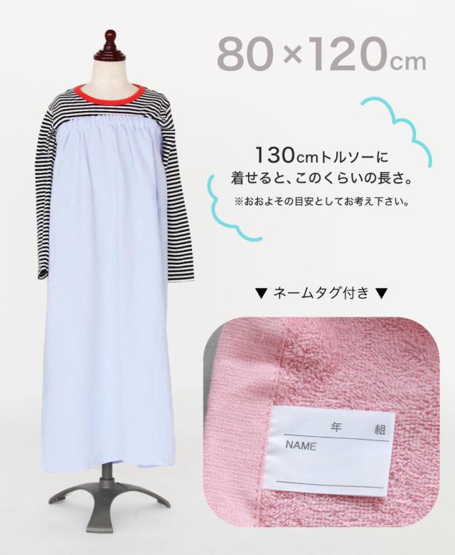 シンプルで使いやすい無地のラップタオル。サイズ調節可能&ネームタグ付きで、学校の授業や習い事にも!肌に優しいコットン100%。