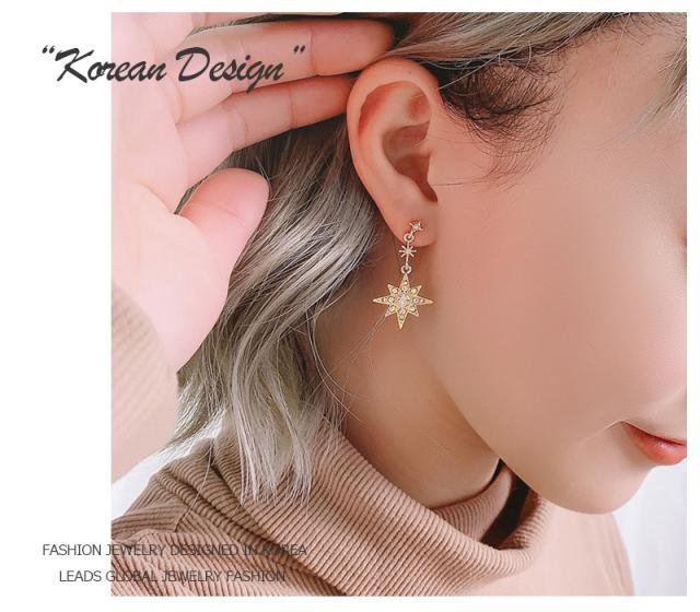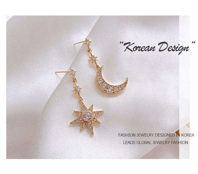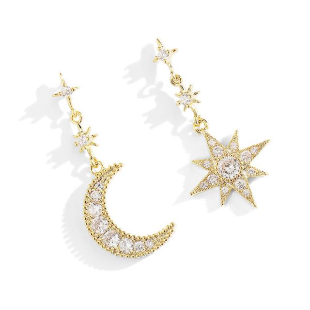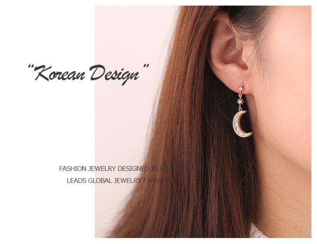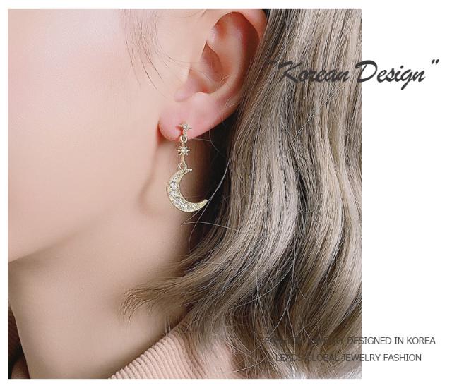 ピアス 18金 仕上げ CZダイヤ アシンメトリー 星月 モチーフ レディース 揺れる アレルギー対応 ポイント消化 誕生日 母の日 プレゼント