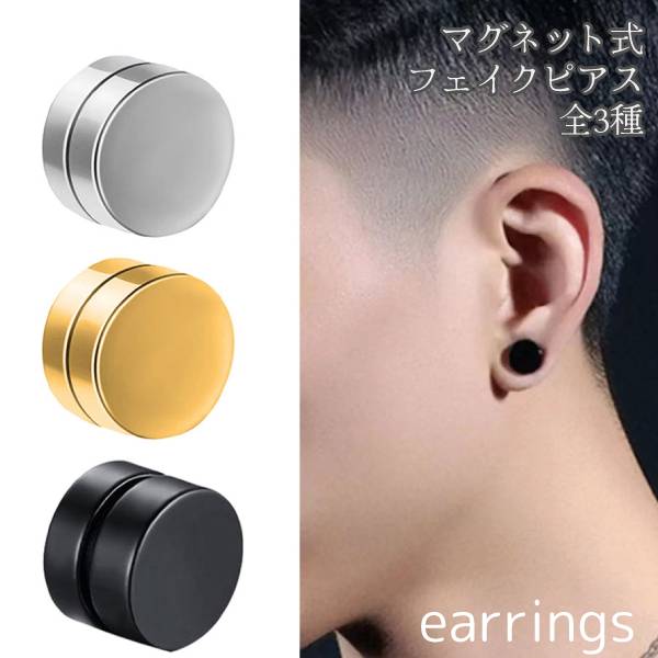【10mm】フェイク レディース メンズ 穴あけ不要 左右セット マグネットピアス 磁気ピアス 10mm フェイクピアス アクセサリー パンク
