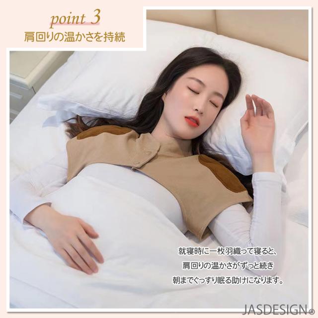 就寝時に一枚羽織って寝ると、肩回りの温かさがずっと続き朝までぐっすり眠る助けになります。