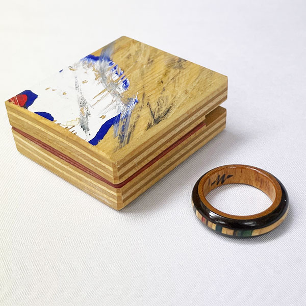 リングケースもデッキ廃材で作られており、ケースに刻まれた傷は役目を終えたデッキの証。