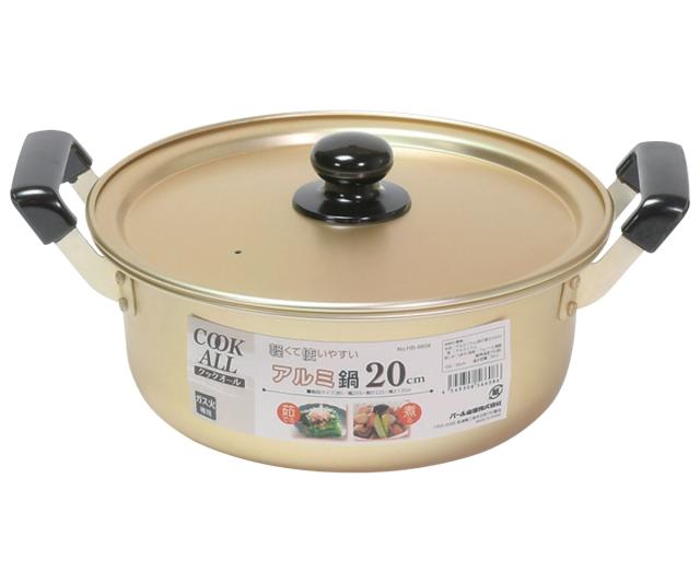 両手鍋 20cm ガス火専用 アルミ鍋 クックオール ( なべ お鍋 両手なべ ガス火対応 ふた付き 軽い 20センチ アルミ製 アルミ蓋 軽量 調理器具 キッチン用品 )