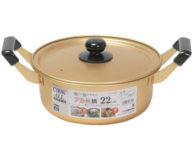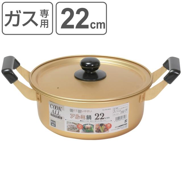 両手鍋 22cm ガス火専用 アルミ鍋 クックオール ( なべ お鍋 両手なべ ガス火対応 ふた付き 軽い 22センチ アルミ製 アルミ蓋 軽量 調理器具 キッチン用品 )