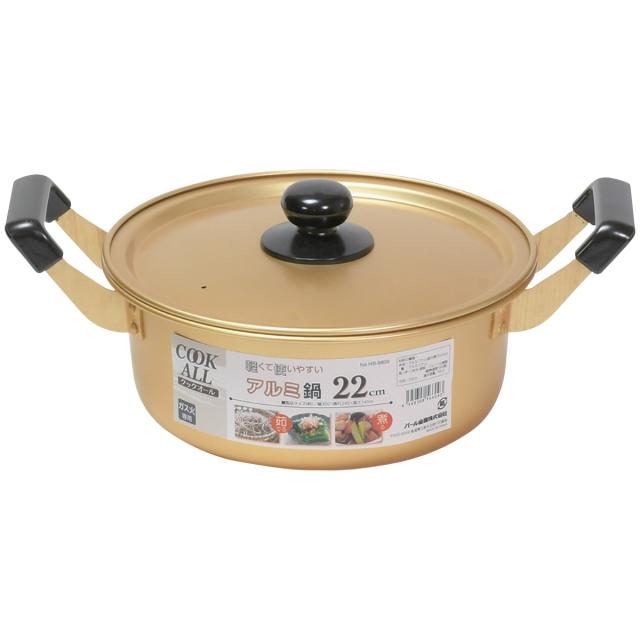 両手鍋 22cm ガス火専用 アルミ鍋 クックオール ( なべ お鍋 両手なべ ガス火対応 ふた付き 軽い 22センチ アルミ製 アルミ蓋 軽量 調理器具 キッチン用品 )