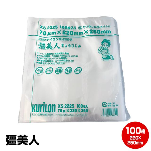 【全国送料無料】彊美人 100枚 XS-2225 ナイロンポリ 真空 厚70μ クリロン化成 220×250mm 22-25 真空袋 業務用 透明 ラミネート袋 きょうびじん きょう美人 真空パック 袋 ポリ袋【ポスト投函】