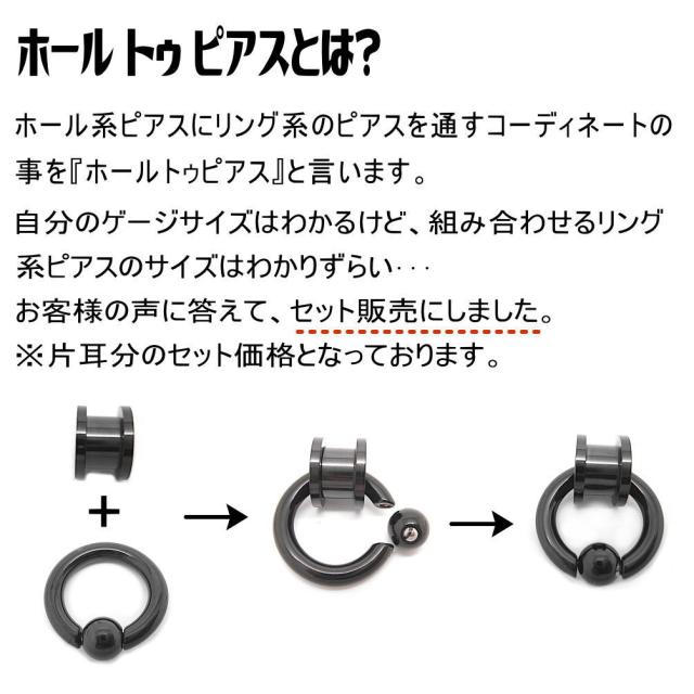 ホール系ピアスにリング系のピアスを通すコーディネートの事を『ホールトゥピアス』と言います。ホール系ピアスだけでつけるよりも断然インパクトのあるコーディネートになります。