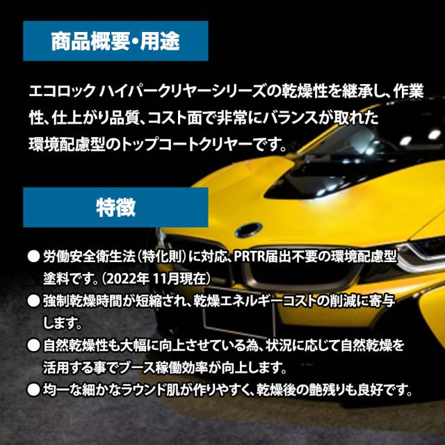 エコロック ハイパークリヤーシリーズの乾燥性を継承し、作業性、仕上がり品質、コスト面で非常にバランスが取れた環境配慮型のトップコートクリヤーです。