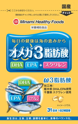 ミナミヘルシーフーズ オメガ3脂肪酸 31日分 62球【ネコポス】サプリ DHA EPA スクワレン 青魚