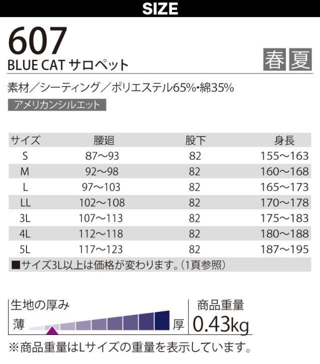 クレヒフク BLUE CAT サロペット 607 4L 5L 大きいサイズ 薄地 おしゃれ カジュアル つなぎ 続服 作業服 作業着 春夏 イベント レディス メンズ KURE