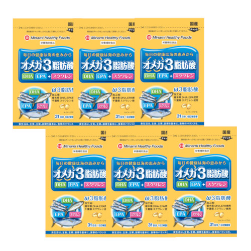 ミナミヘルシーフーズ オメガ3脂肪酸 31日分 62球×6【6個セット】【ネコポス】サプリ DHA EPA スクワレン 青魚