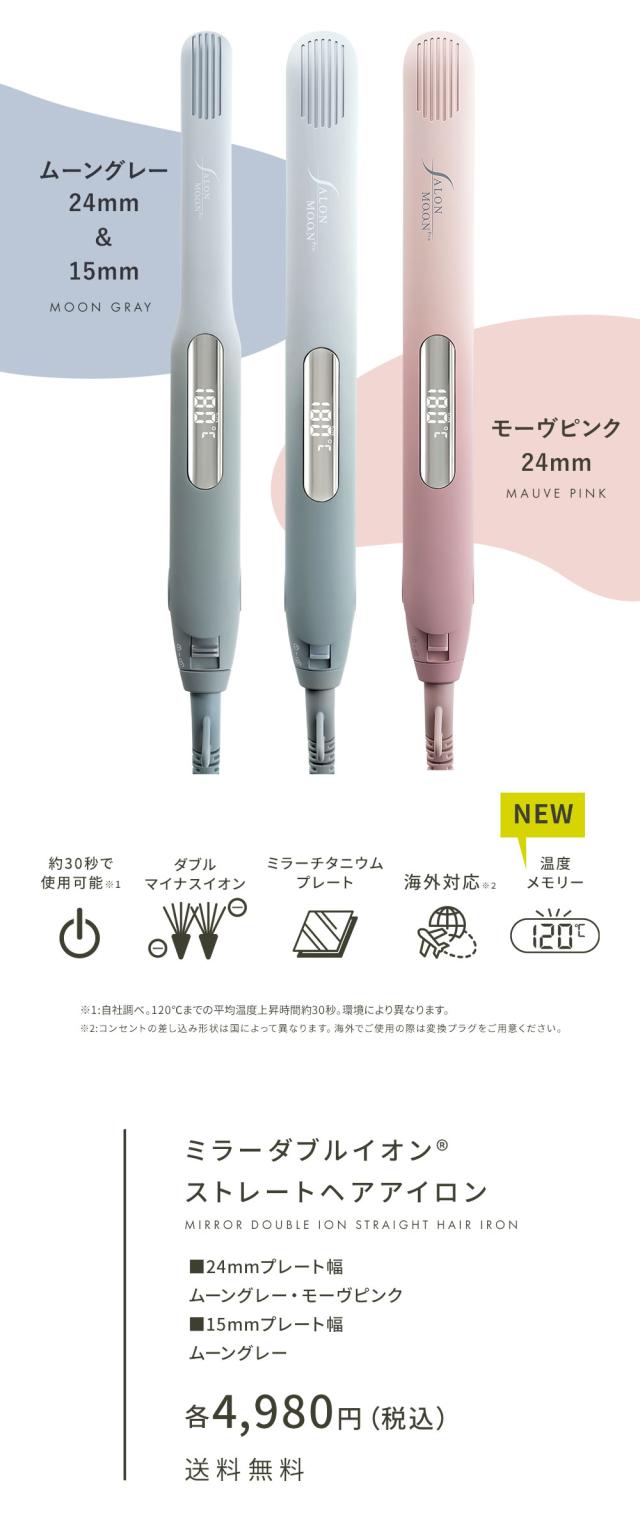ヘアアイロン ストレートアイロン サロンムーン ミラー ダブルイオン モーヴピンク ムーングレー ミラーチタニウム プロ仕様 230℃ 海外対応 カール としても使える 2WAY 美容師 おすすめ