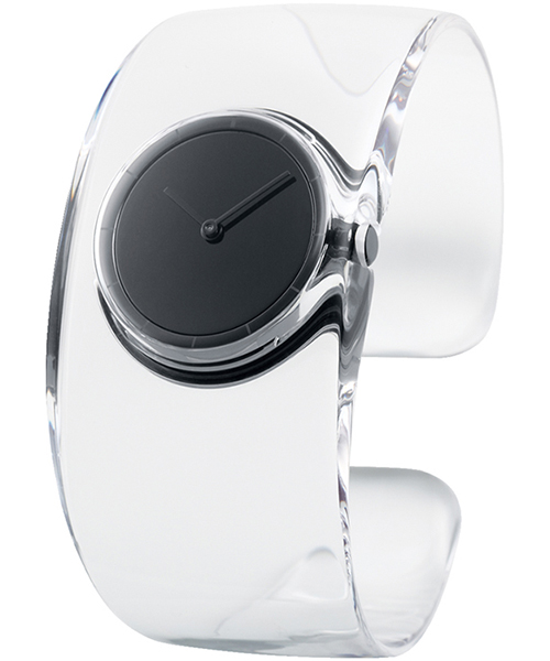 「水のかたち。透明な時を刻む時計」をコンセプトに、吉岡氏が得意とする透明な素材を用い、水のように「かたち」がなく、光のように瞬間の輝きを持つ"O"シリーズ。敬する日本人100人」に選ばれている。