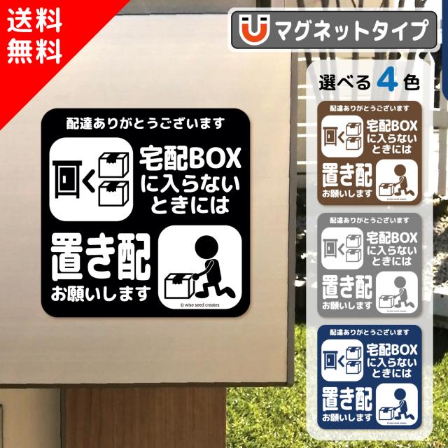 置き配 お願い マグネット ステッカー 宅配BOXに入らないとき 全4色 MG-LS006-NE 置き配OK 宅配ボックス 大きな荷物 メッセージ プレート 1000円ポッキリ 送料無料 看板 張り紙 マンション アパート ポスト 留守 不在 再配達 依頼