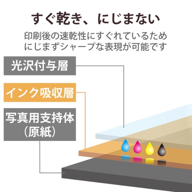 ■再現性が素晴らしく高精細な印刷が可能な写真用光沢紙です。 ■光沢紙ならではのくっきりとした印刷表現と輝く光沢感で撮影したデータを色鮮やかに再現します。 ■印刷後の速乾性にすぐれているため、にじまずシャープな表現が可能です。 ■高品質な日本の紙を採用しています。 ■趣味の写真や撮影会で撮った写真印刷におすすめの高グレード紙です。 ■印字面に触れること無く用紙を取り出すことができる「紙つまみ台紙」入りで大変便利です。※特許出願中 ■自社環境認定基準を1つ以上満たし、『THINK ECOLOGY』マークを表示した製品です。 ■環境保全に取り組み、製品の包装容器が紙・ダンボール・ポリ袋のみで構成されている製品です。