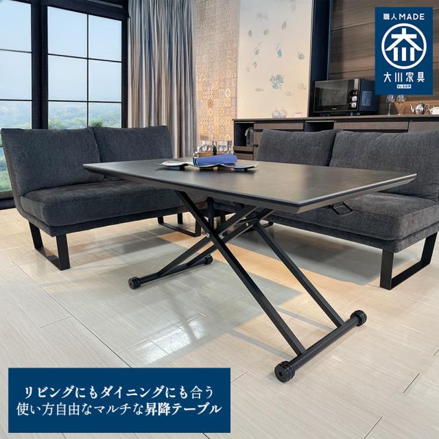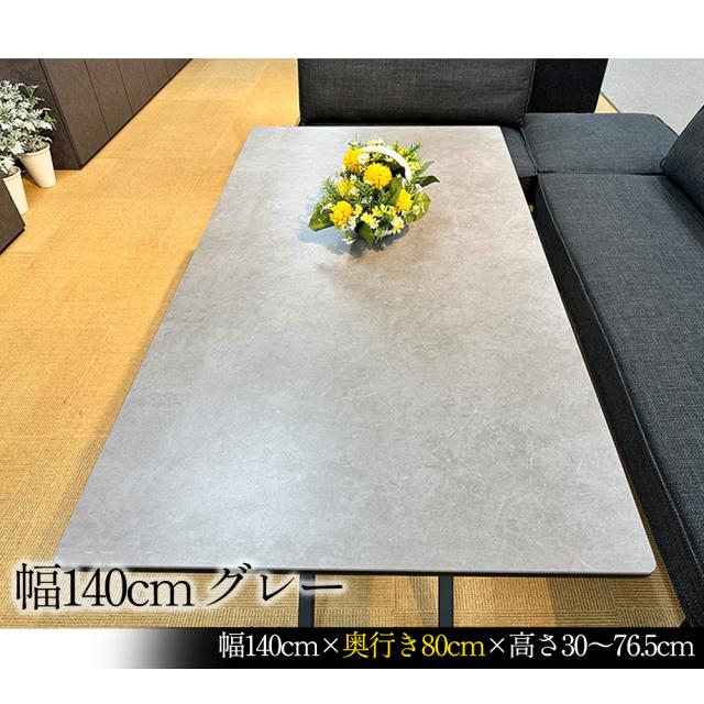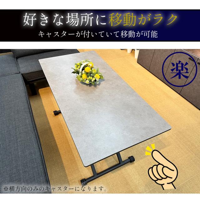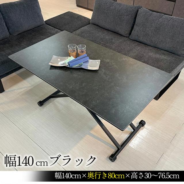 昇降式テーブル キャスター付き 幅140cm グラフィティ 【大理石調ブラック グレー リフティングテーブル 高さ調節 昇降式センターテーブル 伸縮 伸長 コンパクト おしゃれ 自由自在 セラミック リビングテーブル