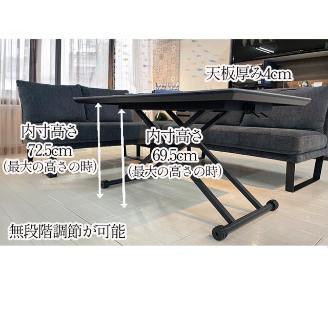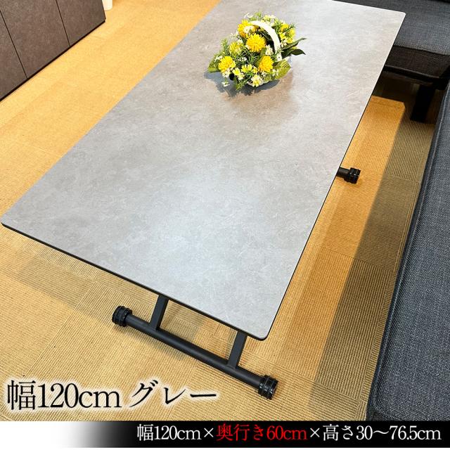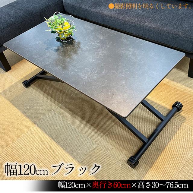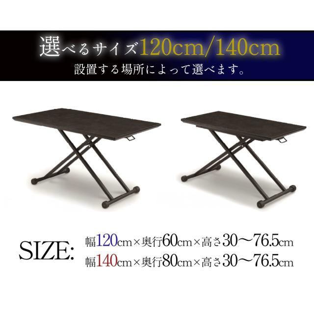 昇降式テーブル 120cm 140cm 大理石調ブラック ・グレー