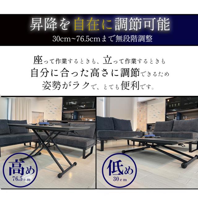 | サイズ | 昇降テーブル :幅120cm×奥行60cm×高さ30〜76.5cm 昇降テーブル :幅140cm×奥行80cm×高さ30〜76.5cm 天板厚み:4cm |