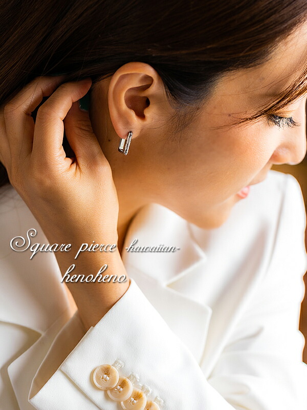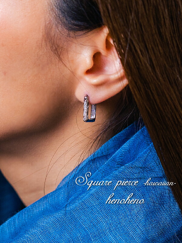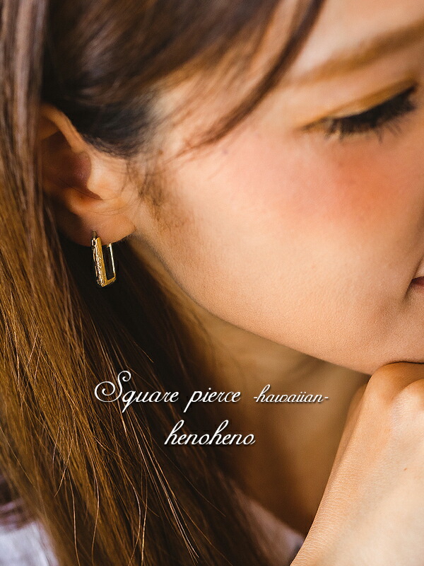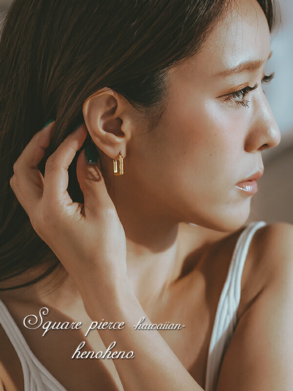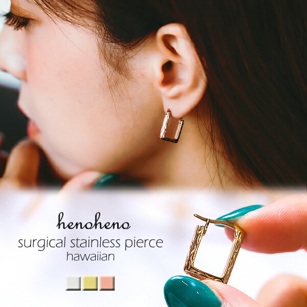 ハワイアンジュエリー ピアス 四角 スクエア モード フープピアス レディース サージカルステンレス 片耳 キャッチレス 高見え ミニマム 小さい 上品 おしゃれ メンズ 男女兼用 金属アレルギー対応 プレゼント シンプル henoheno ブランド
