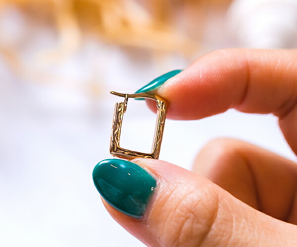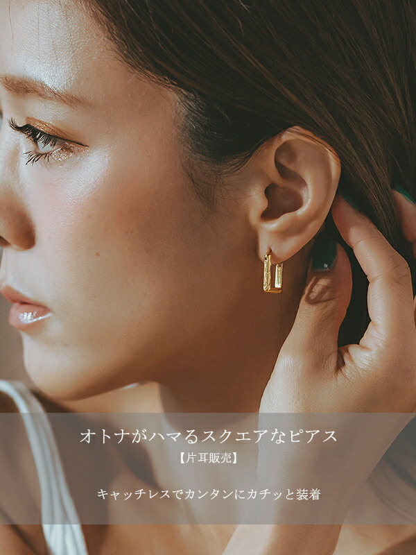 | 顔周りにモードなアクセントをプラスする四角いピアス。 ハワイアンの模様がさりげなくオトナっぽい、シンプルでカッコイイ小さなフープ型。 キャッチいらずで「カチッ」とするだけの遮断式タイプで装着がとてもカンタン!! シンプルなのにどこか華やかで、普段使いやオフィスシーン、 どんなコーデにも取り入れやすく大活躍してくれそうな予感。 | ||||